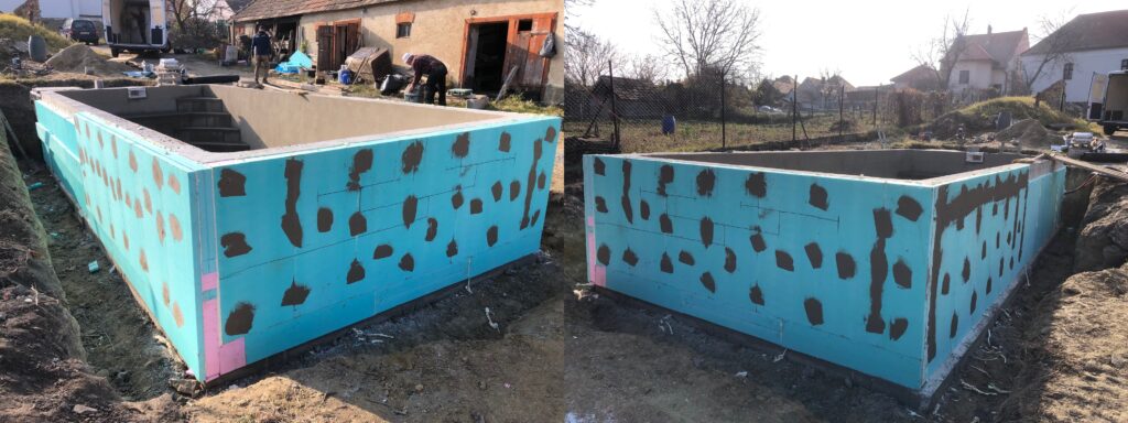A föld alatti (lábazati és pincefal) szigeteléseknél, így a medencéknél is, kizárólag zártcellás polisztirolt (XPS) szabad használni.